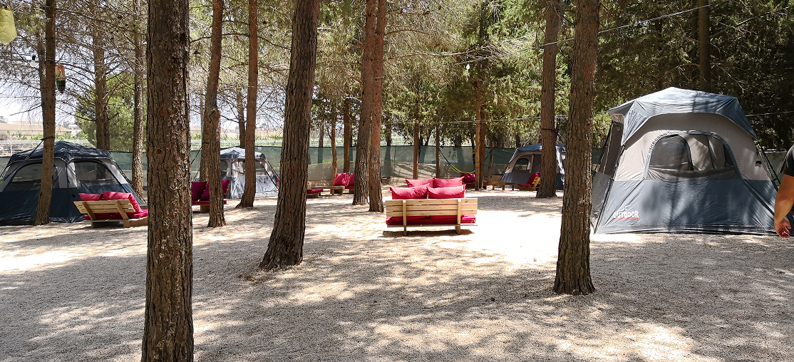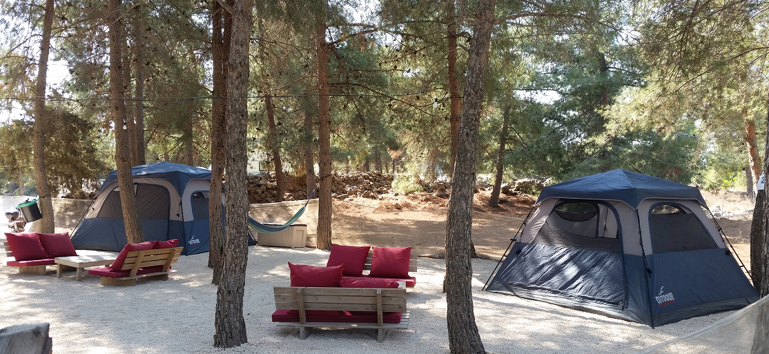 מתחם להקמת אוהלים. במתחם 10 משטחים, כל משטח עשוי חצץ דק לבן בגודל 3.5 מ' * 3.5 מ' להקמת אוהל. פינת זולה, לישיבה ערסל וארגז איחסון פרטי לכל משטח, כיור ברז מים ופח אשפה פרטי לכל משטח, גרילים משותפים, שירותים מקלחת משותפים ומטבח משותף במרחק 70 מטר מהמתחם.(המתחם אינו פעיל בחורף ובגשם)