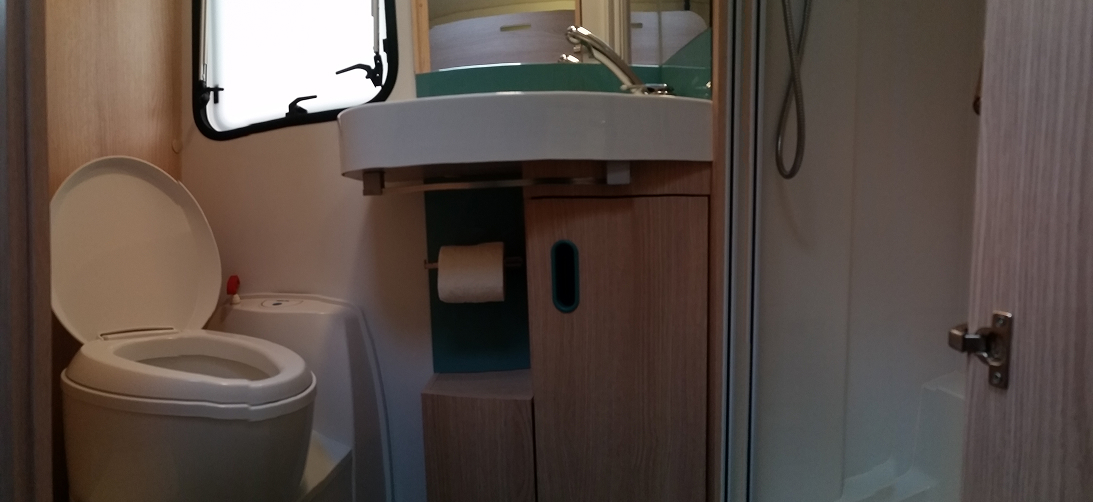 שירותים ומקלחת פרטיים בתוך הקראוון מקלחות קצרות.